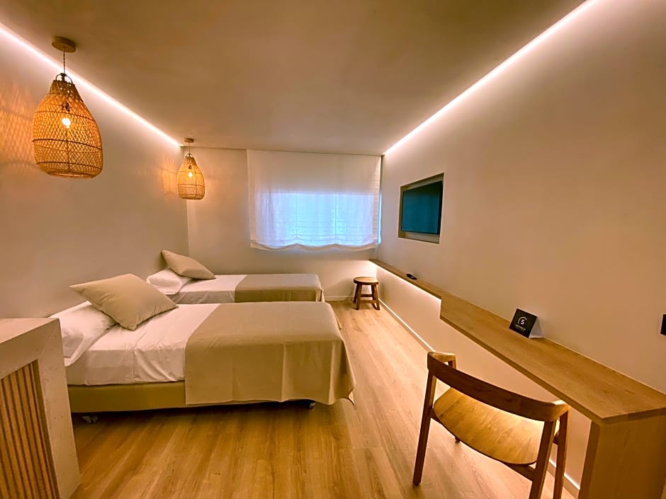 The spacious air-conditioned twin/double room offers a flat-screen TV with satellite channels, soundproof walls, a mini-bar, a tea and coffee maker as well as pool views.
